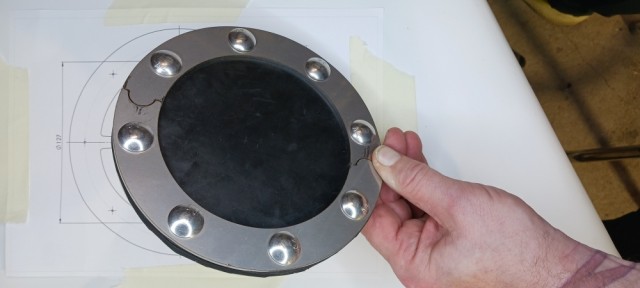 - Kjørn merkene for de 9 hullene (slag lett med dor slik at boret ikke glipper).